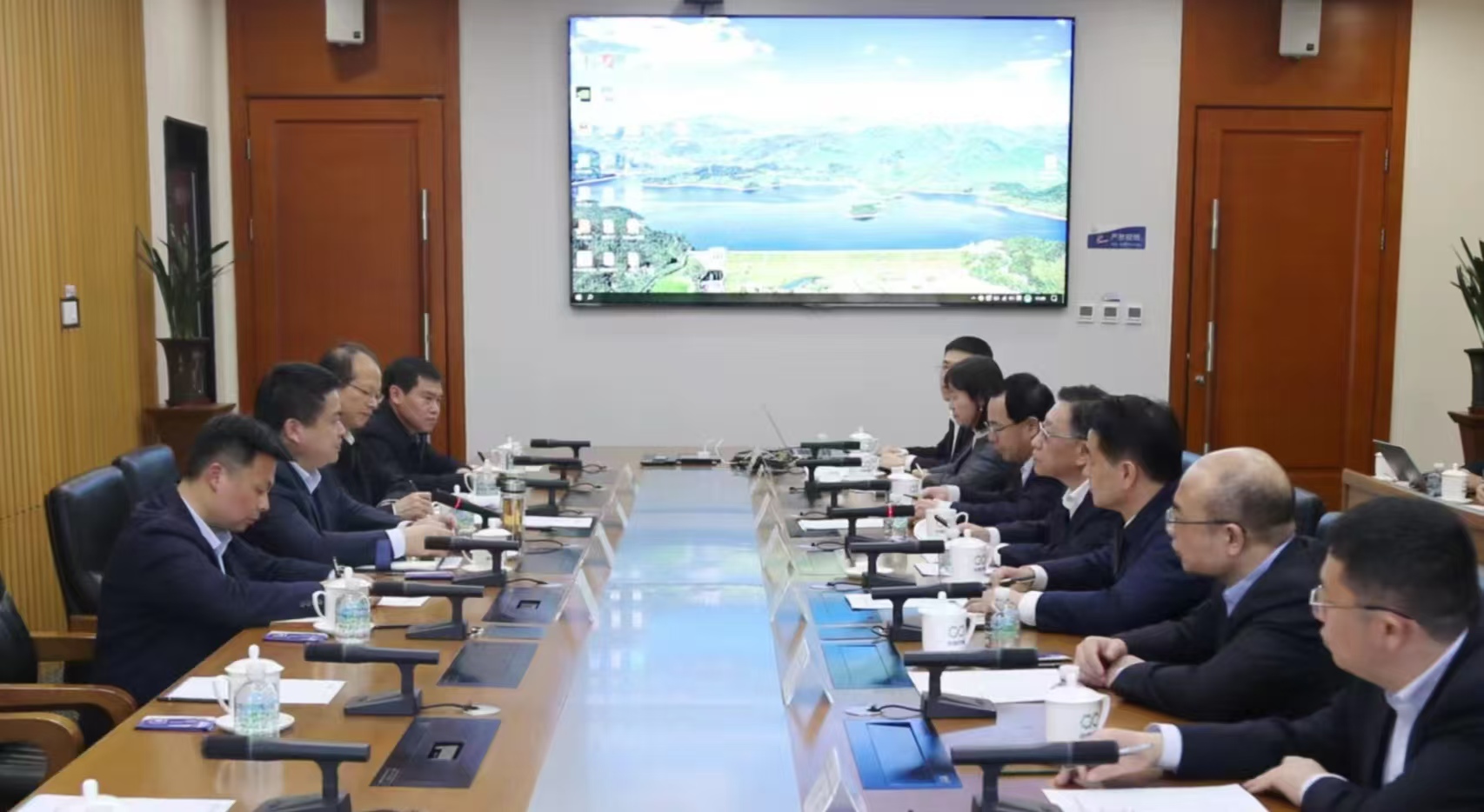 中國節(jié)能環(huán)保集團領(lǐng)導(dǎo)杜樂、省生態(tài)環(huán)境集團領(lǐng)導(dǎo)張小忠,雙方有關(guān)單位和部門負(fù)責(zé)同志參加會談。